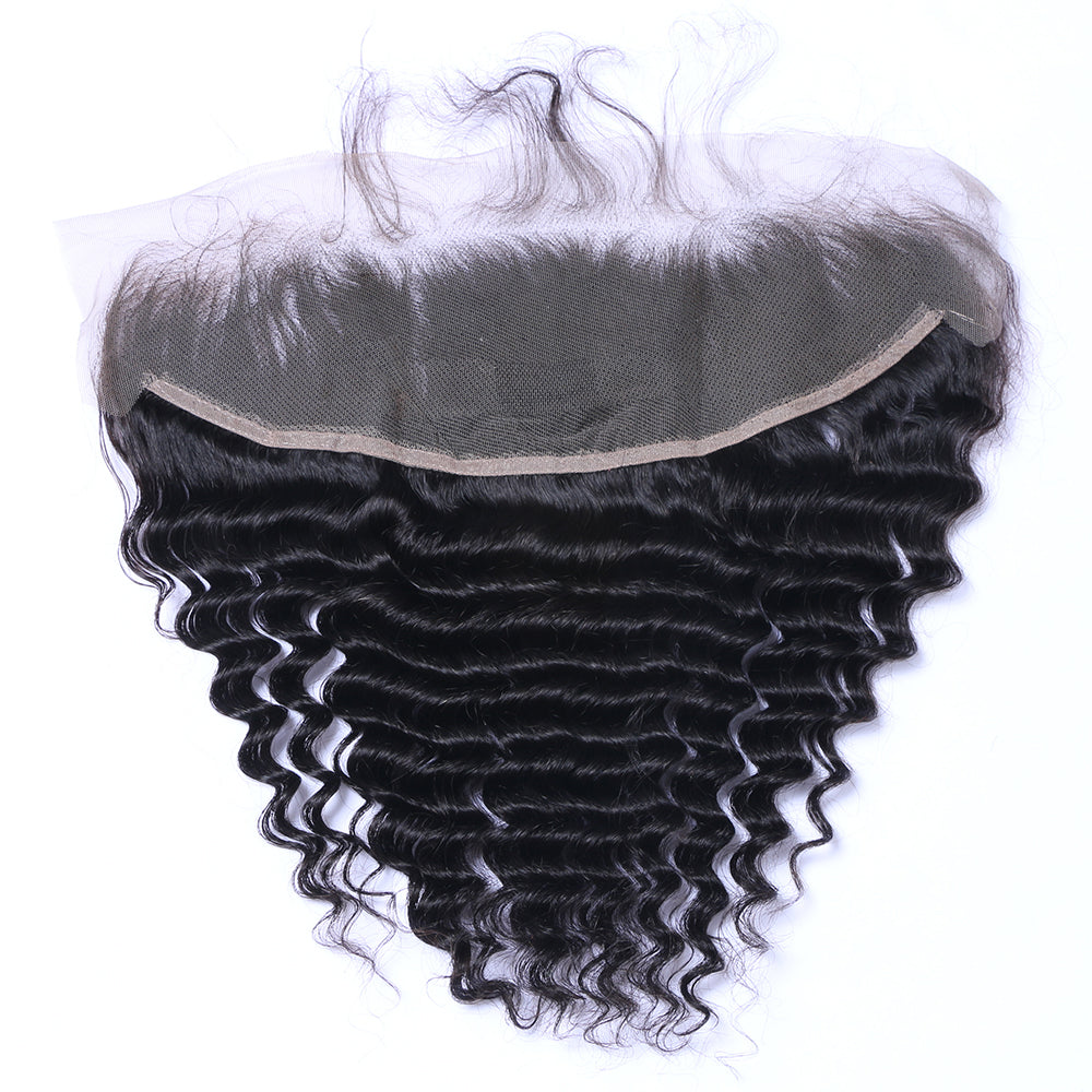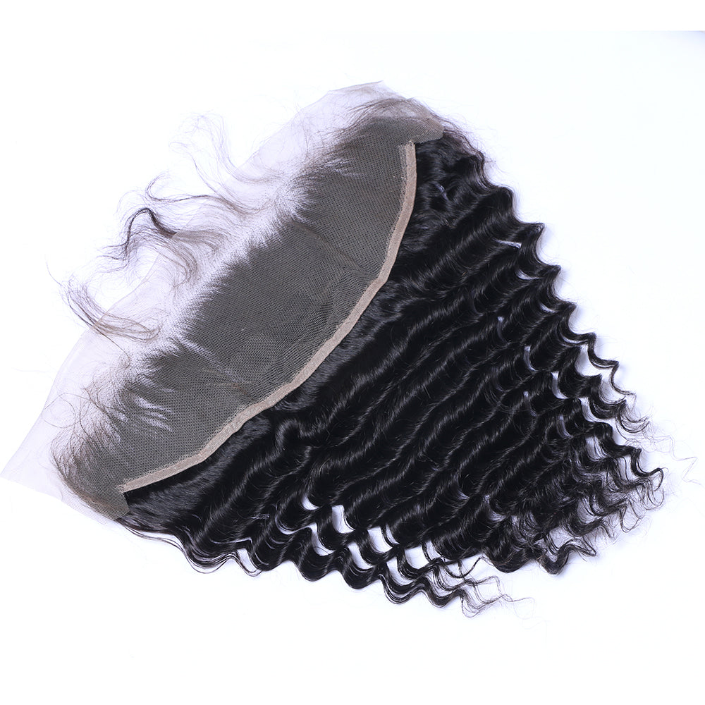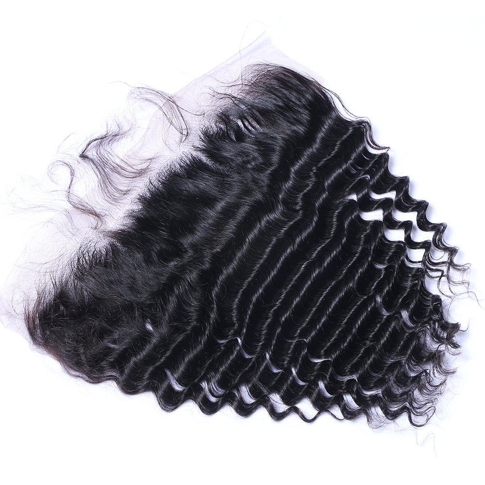 Wholesale 13x4 Deep Wave Swiss Lace Frontral Ear to Ear 100% Brazilian Human Virgin Remy Hair Peruvian Malaysian Indian Natural 1B Color Frontrals Weaves Extensions