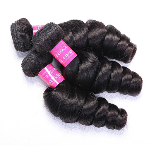 Regular price From $17.10 USDRegular priceUnit price / per$0.00 USDSale price From $17.10 USDHair Bundle Loose Wave Round Head Hair Weft Natural Color 1B Unprocessed Brazilian Virgin Human Hair Weave